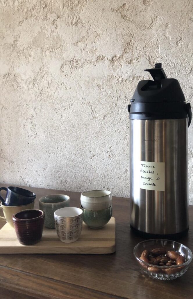 Une tisane du jardin est proposée après la pratique, pour un temps d’échange post pratique.